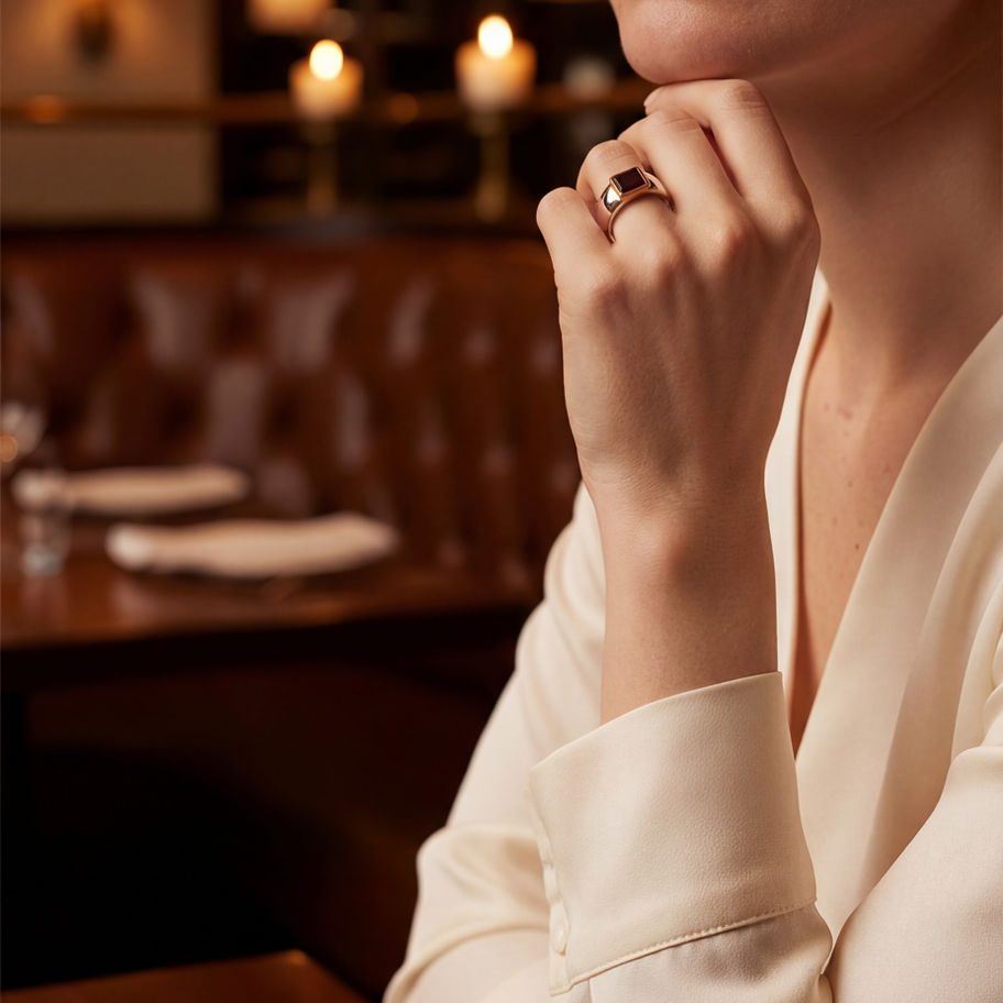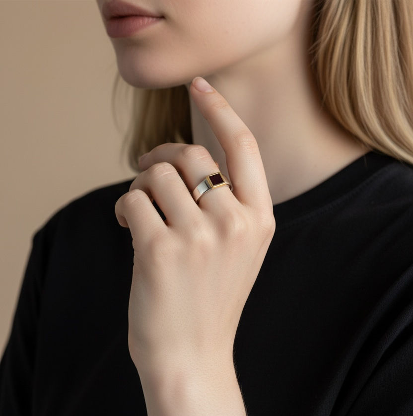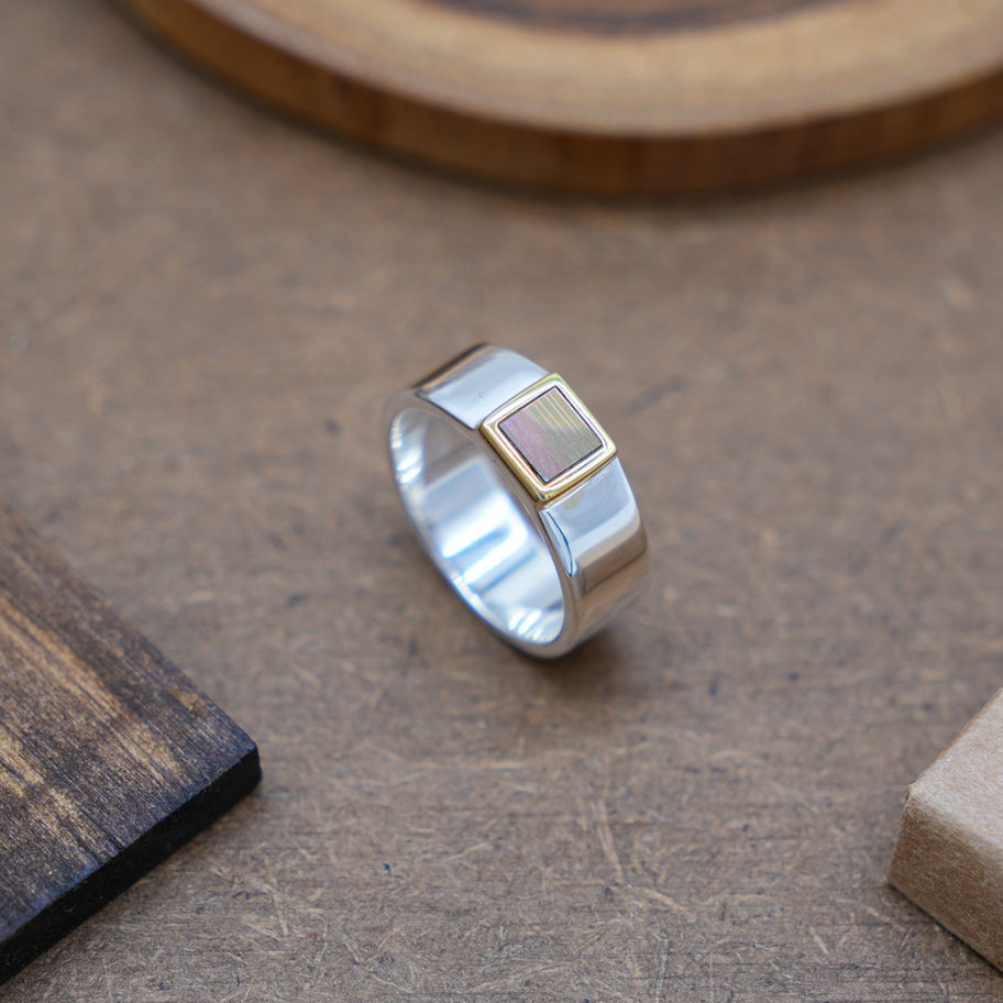 A structured, flat-top silhouette crafted in 925 Sterling Silver and finished with refined 18K Gold detailing.