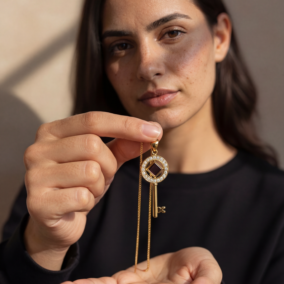 Crafted in 925 sterling silver and finished with rich 18K gold plating, this key-shaped pendant carries both beauty and meaning. The circular head is framed with delicate stones, surrounding the Nano Bible chip at its center. The clean, elongated stem gives the piece a balanced, refined silhouette that feels modern yet timeless. The key is a powerful biblical symbol — representing authority, trust, and access. With the New Testament placed at its heart, this piece reflects the promise that faith opens the door to salvation.
