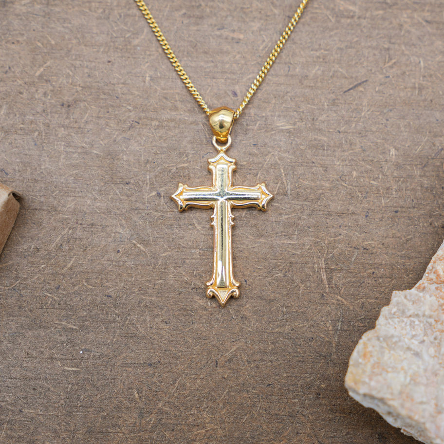 An elegant cross pendant crafted in 925 Sterling Silver and finished with refined 18K Gold Plating (1 Micron thickness).