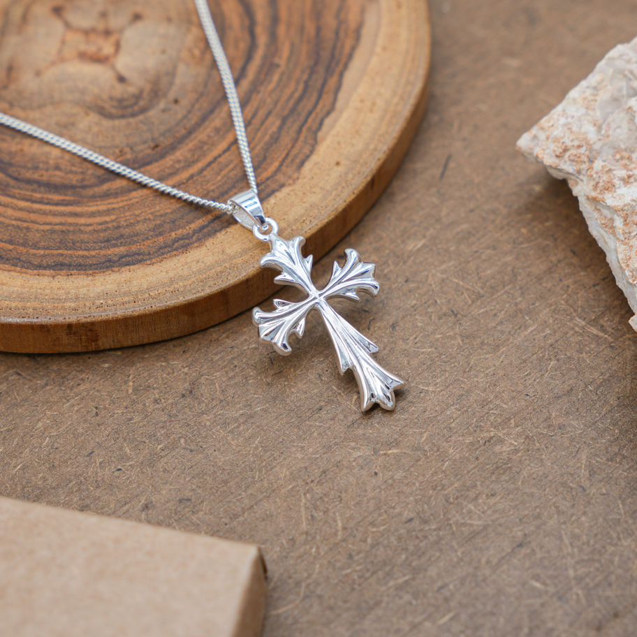 A classic organic-style cross pendant crafted in solid 925 Sterling Silver, inspired by natural flowing forms.